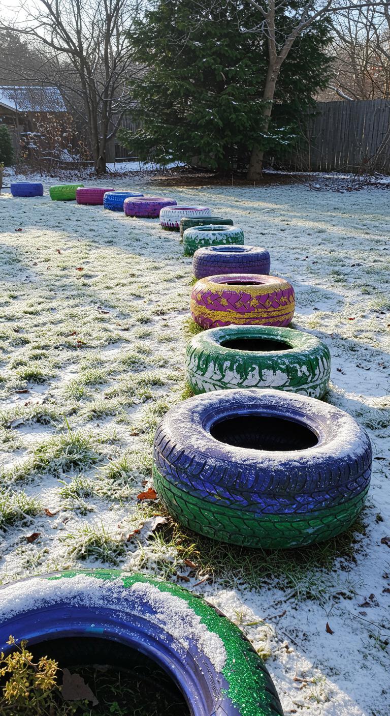Turn old car tyres into unique ornaments for your yard. Paint them in festive colors or turn them into Christmas motifs, such as candy canes or snowflakes. Place these on the ground or hang them from trees. This is a fantastic way to recycle old items while creating a distinctive holiday display. Others will admire your creativity, and you’ll keep costs low. Plus, it involves the whole family in crafting and decorating, making it a fun activity.