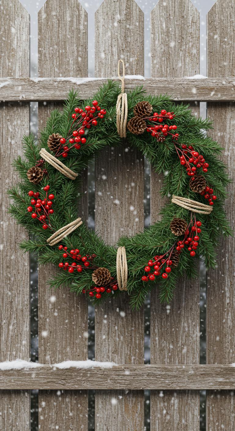 Use natural materials to create a festive wreath for your door or garden. Gather pine branches, holly leaves, and berries. You can fashion these onto a wire frame or simply tie them together for a rustic look. Add a big red bow for a cheerful touch.