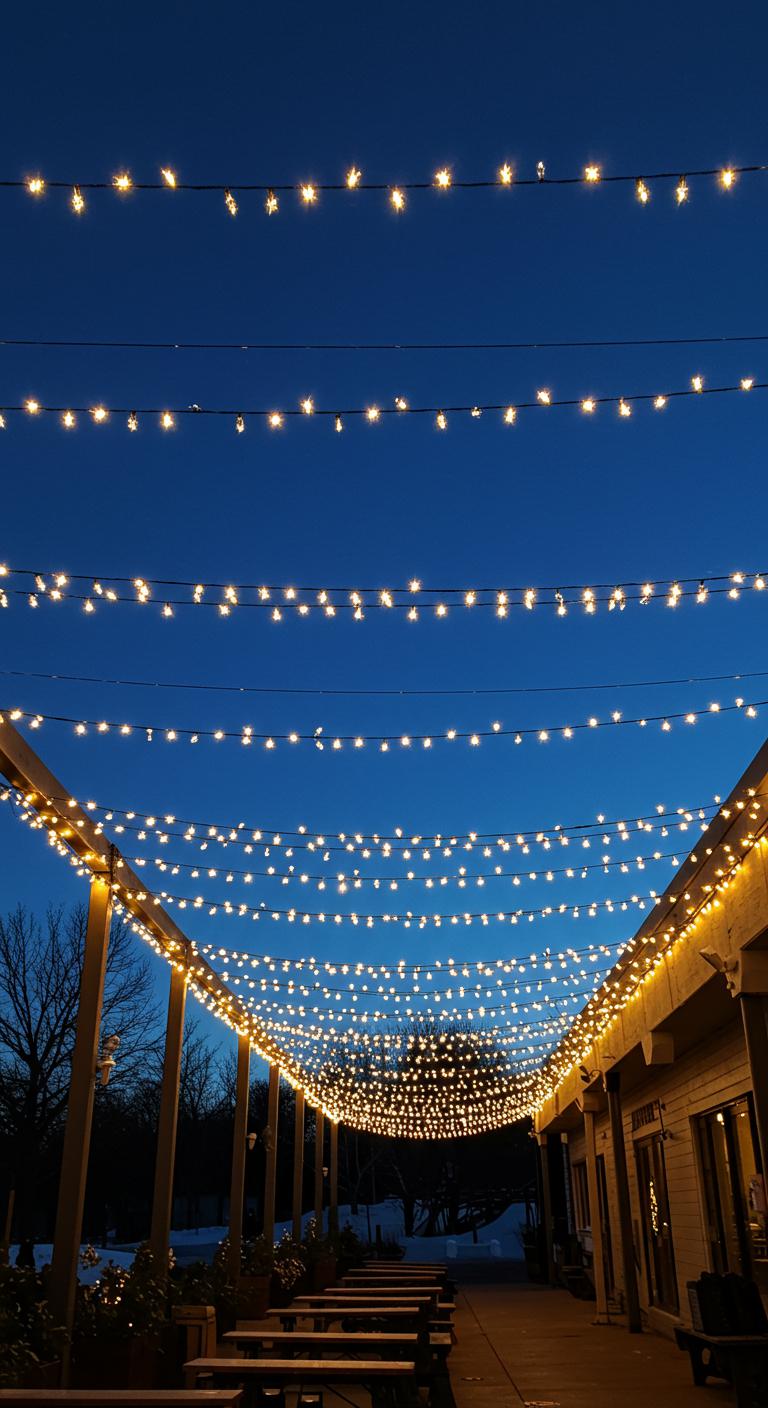 Drape string lights overhead to create a magical canopy. String them between trees or around a patio. You can vary the height for added drama. This enchanting touch sets a festive mood and is perfect for holiday gatherings. Wrap the lights around poles, fences, or trellises for more coverage.