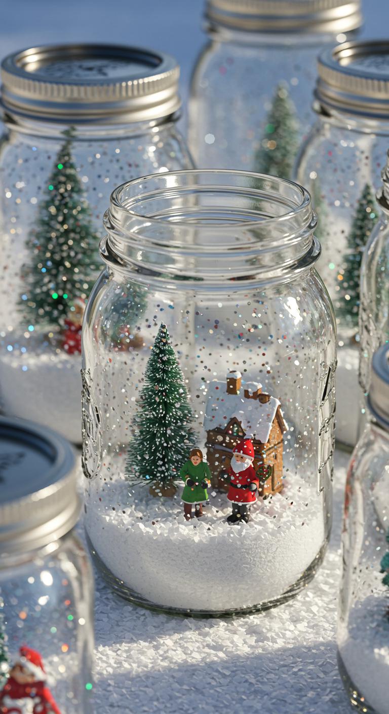 Create DIY snow globes using mason jars or glass containers. Fill them with water, glitter, and small holiday-themed ornaments. Seal tightly and shake for delightful snow effects. These charming decorations can enhance your outdoor aesthetic when placed in groups on tables or shelves.