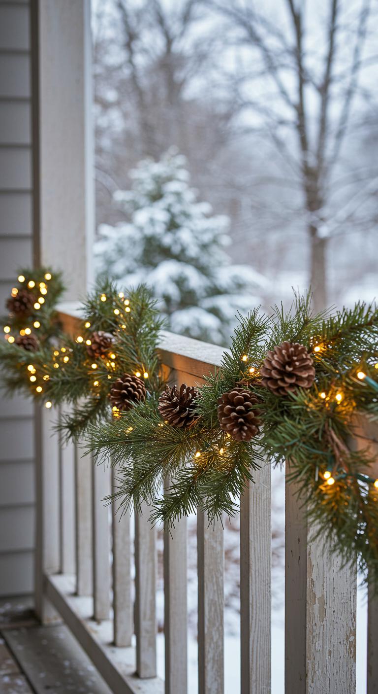 Make a pine cone garland for an eco-friendly decoration. Collect pine cones and string them together with twine. You can add small lights or glitter for extra sparkle. This simple project looks stunning along railing or fences, giving a lovely rustic look.