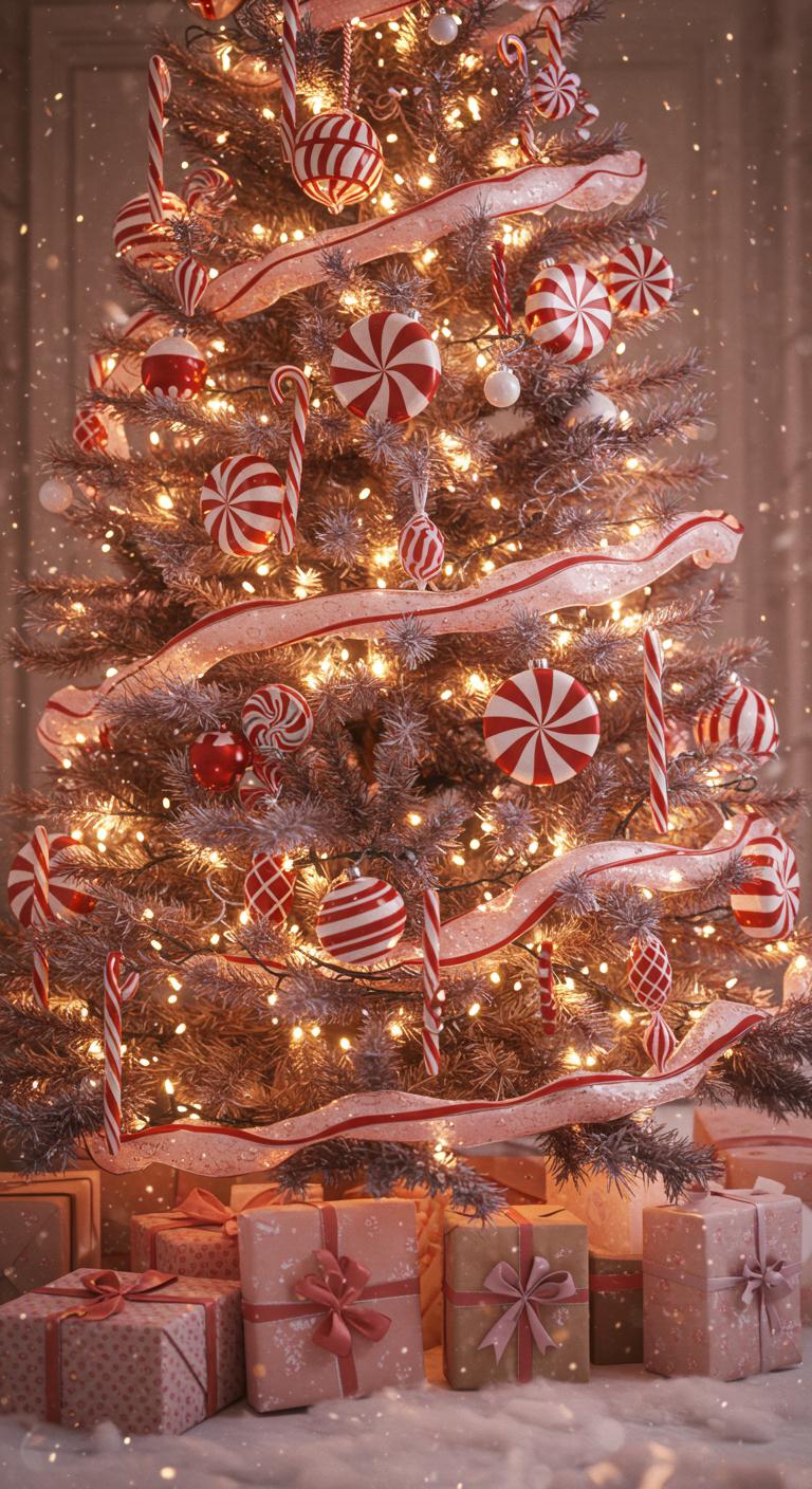 Blend classic red with pink to create a peppermint-themed tree. This playful combination celebrates the joy of the season with whimsical warmth. Store-bought peppermint ornaments are available, but you can easily craft your own using red and white paint on clear bulbs. Adorn the tree with candy-striped ribbons to add flair. This theme is perfect for families with kids, as it invites a fun spirit reminiscent of holiday treats.