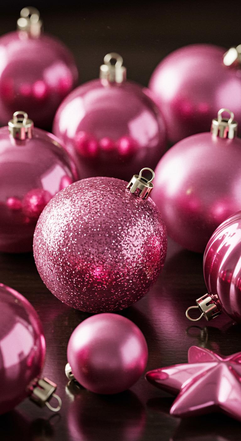 Glam pink baubles are essential for decorating your tree. Choose a variety of finishes, from matte to shiny and glittery. Mixing shapes adds visual interest, so keep a balance of sizes. If you’re looking to save, shop during holiday sales or check local thrift stores for hidden gems. DIY your baubles with paint or glitter to craft unique designs. The right baubles can create stunning layers of texture, transforming your tree into a luxurious centerpiece.