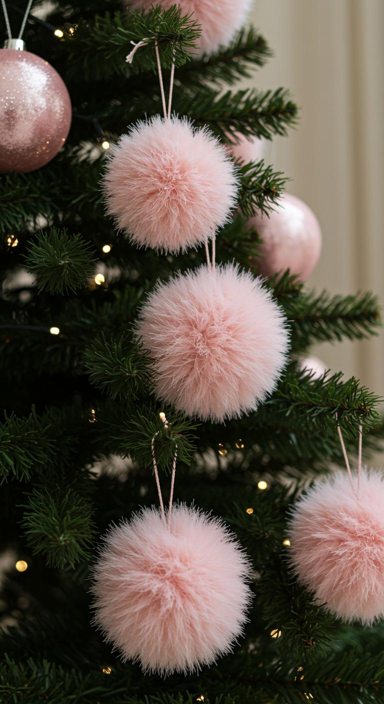 Plush pink pom-poms are an adorable and cozy addition. Scatter them throughout the branches for a soft, textured look. Crafting your pom-poms requires yarn, scissors, and a bit of patience but is entirely budget-friendly. You can also buy pre-made options if you’re short on time. These playful accents complement both casual and elegant themes, bringing a unique touch to your decor while keeping it inviting.
