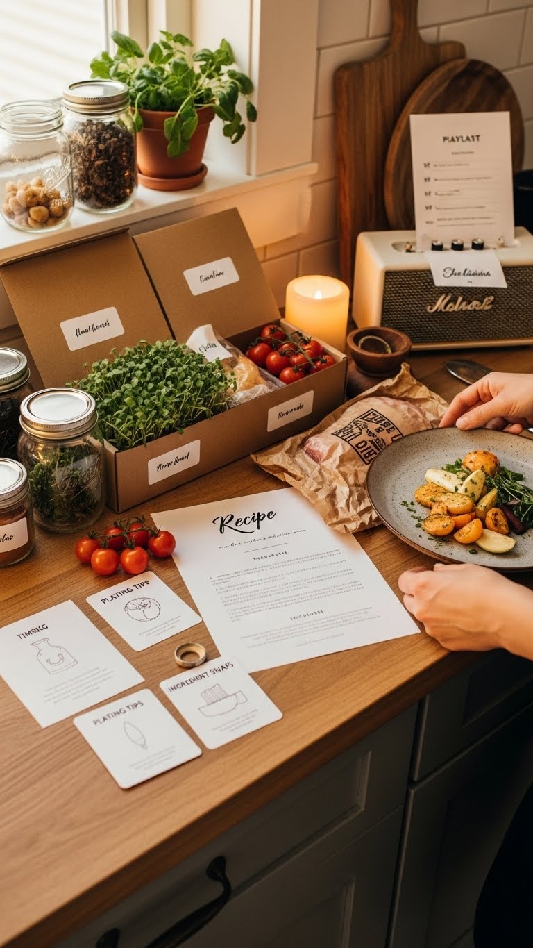 If a hands-on lesson sounds a little formal or you want to keep the magic of that chef-led evening going, put together a home-cooked gourmet meal kit with a clear recipe card he’ll actually use. Curate ingredient sourcing notes, timings, and plating tips so he can own the plated presentation. Include a few swaps, a playlist suggestion, and simple step-by-step confidence boosters.
