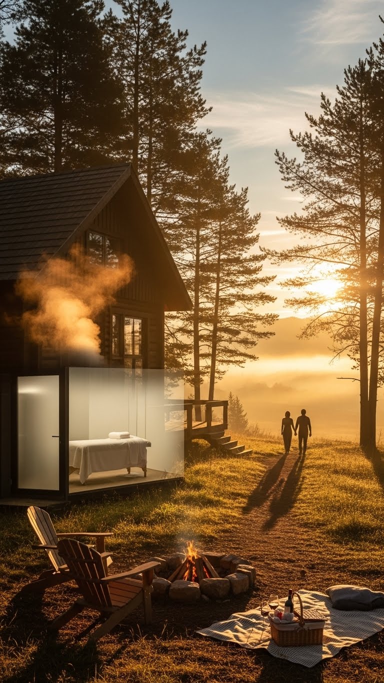You’ll escape to a secluded cabin with sunrise hikes, a well-packed picnic, and evenings by the fire.