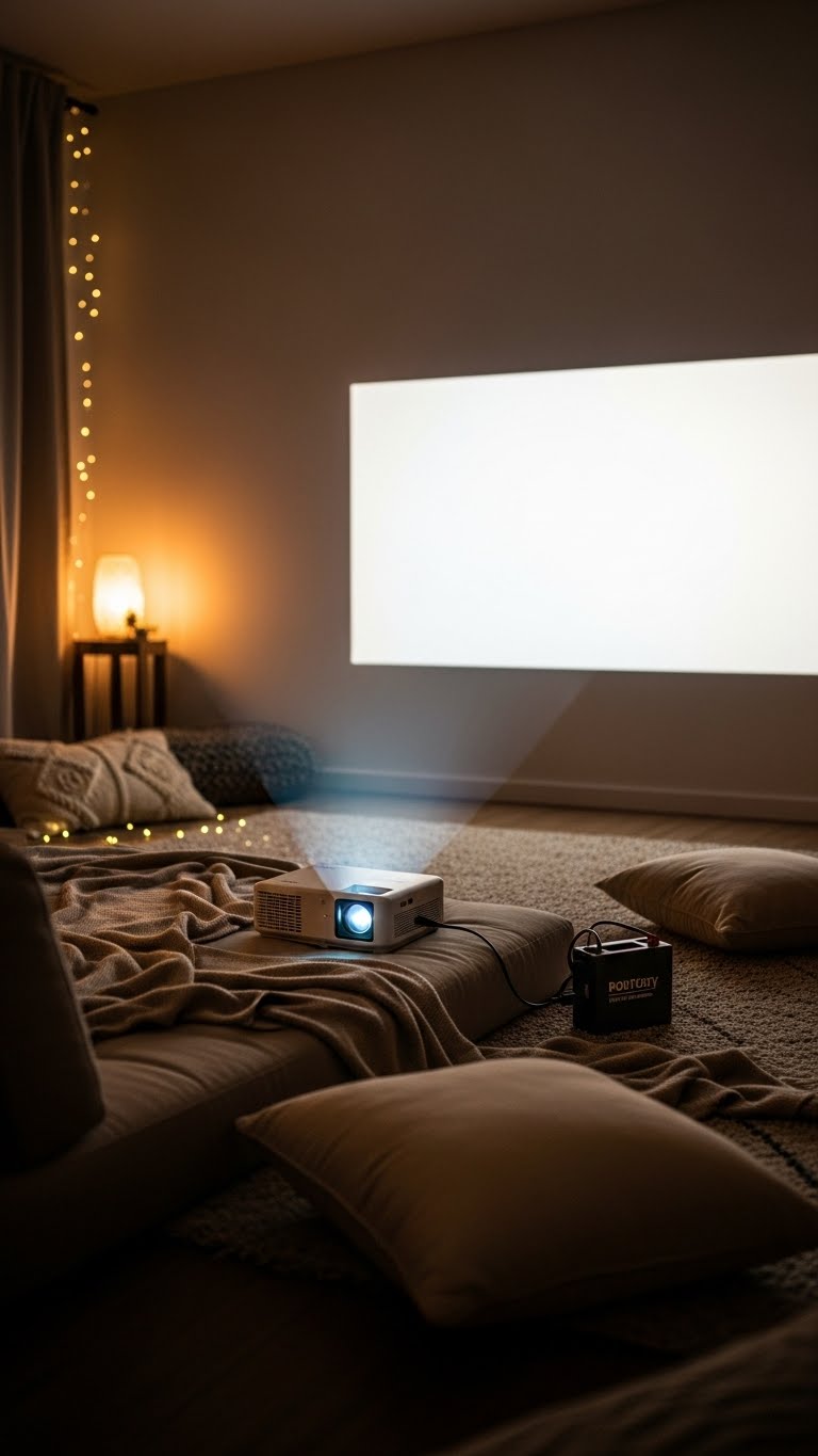 You’ll relish cinematic nights with an ambient screen, crisp image, and simple streaming. Choose a model with a portable battery for rooftop or backyard freedom, and pair it with cozy blankets and low lighting to craft intimate, effortless movie dates.