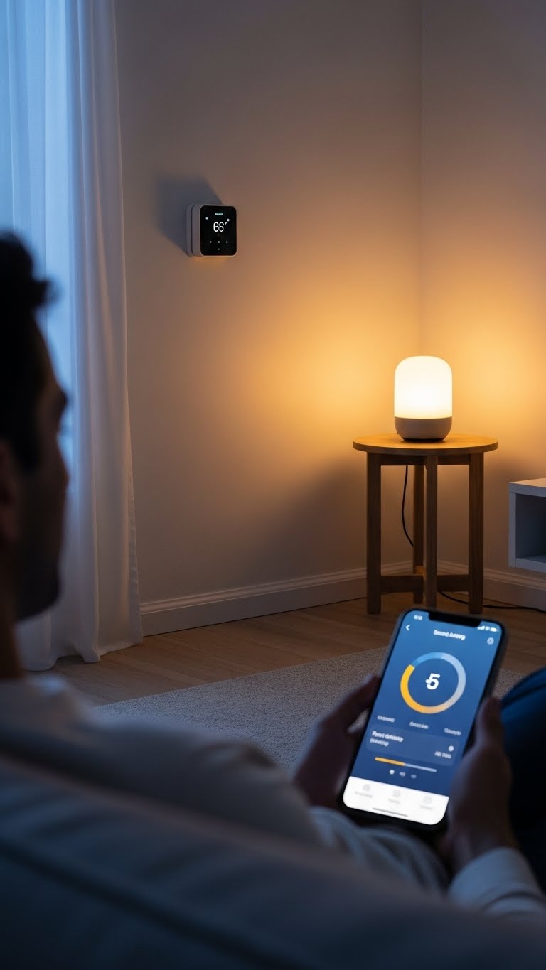 If smart lights and a voice assistant set the mood, a smart thermostat keeps the comfort constant while cutting energy waste—so he feels cozy without thinking about it and the bills shrink quietly in the background.