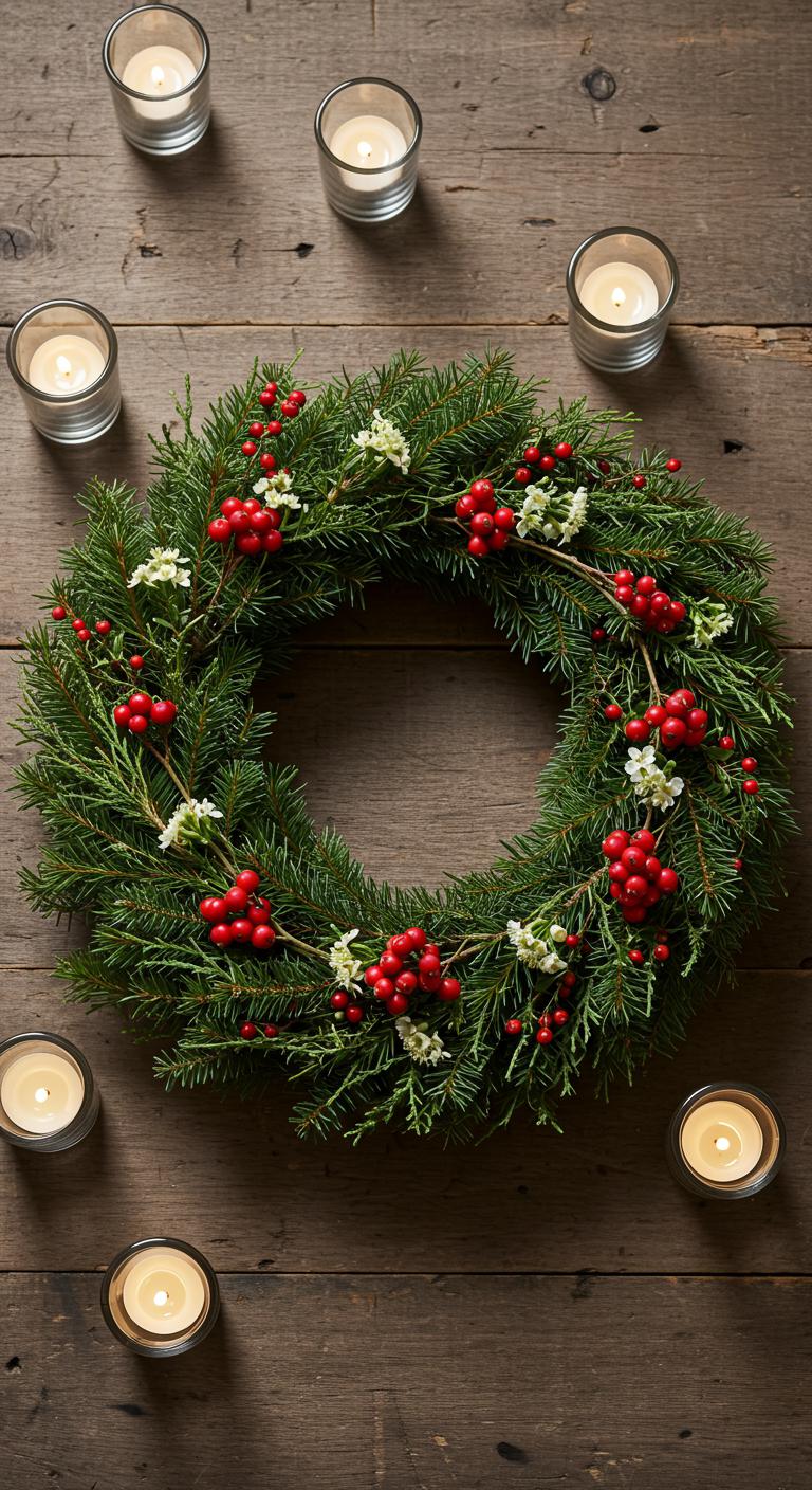 Bring the outdoors inside with an evergreen wreath centerpiece. These centerpieces are enchanting and easy to make. Start with a grapevine base and layer fresh evergreen branches around it. Add mini-ornaments, dried fruits, or berries for a color pop. Use a mix of natural elements to create visual interest. Wreaths can also double as table décor or festive wall hangings. This DIY project can be affordable, especially if you opt for foraged materials from your garden or local landscape.