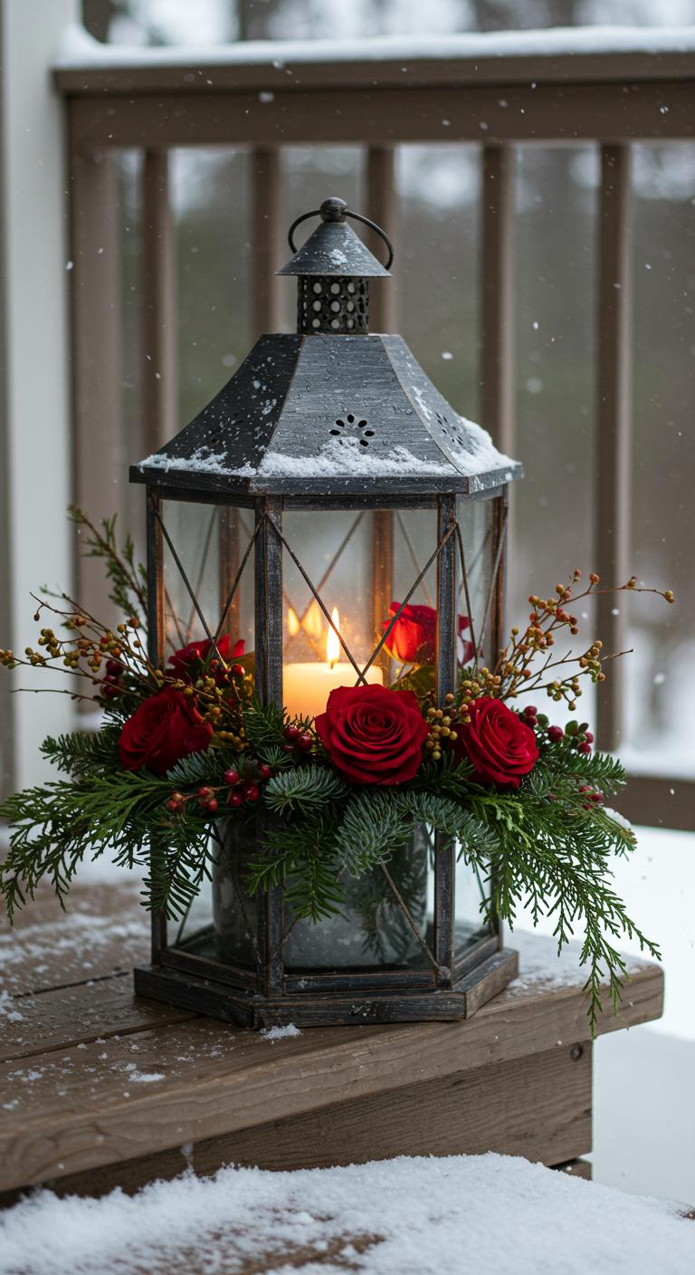 Use rustic lanterns to create stunning decorative arrangements. Fill them with seasonal flowers like red roses and evergreen sprigs. The contrast of flowers with the metal or wood of the lantern gives a festive look. Arrange your lanterns in clusters for visual impact. You can find budget-friendly lanterns at thrift shops or even make your own with repurposed materials. This project is a simple way to brighten any corner in your home for the holidays.