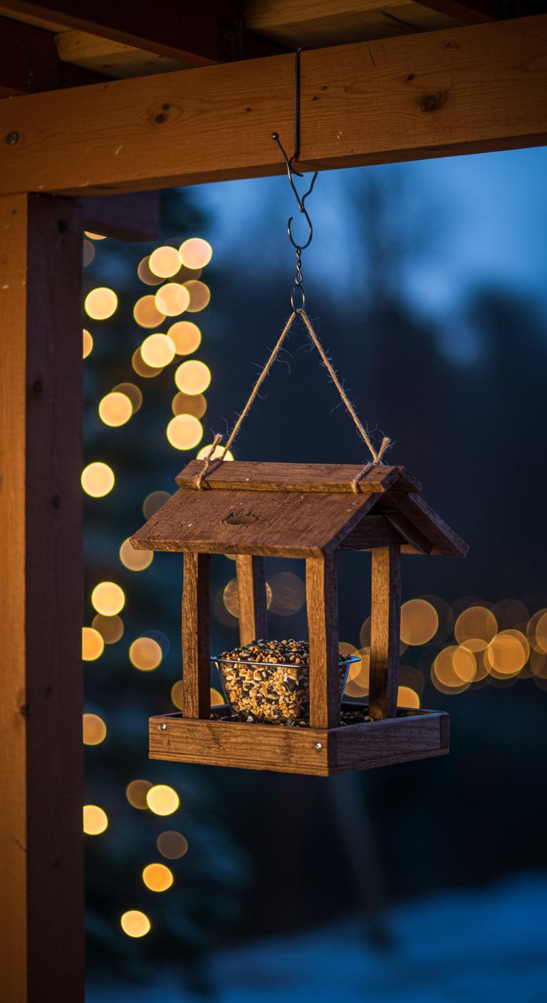 Crafting DIY rustic bird feeders can enhance your porch while attracting wildlife. Use wooden pallets or reclaimed wood to create simple feeders. Fill them with birdseed and hang them from your porch or nearby trees. This idea not only invites nature but also brings joy to watching the birds during the snowy winter days.