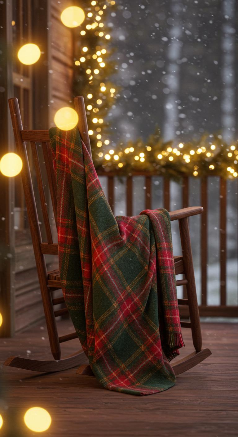 Adding cozy plaid blankets to your porch makes it more inviting. Use them over rocking chairs or benches, making them perfect for cold nights. Purchase a couple of affordable throws from a local shop or upcycle some from your closet. They not only add color and warmth but also encourage people to linger and enjoy the festive spirit.