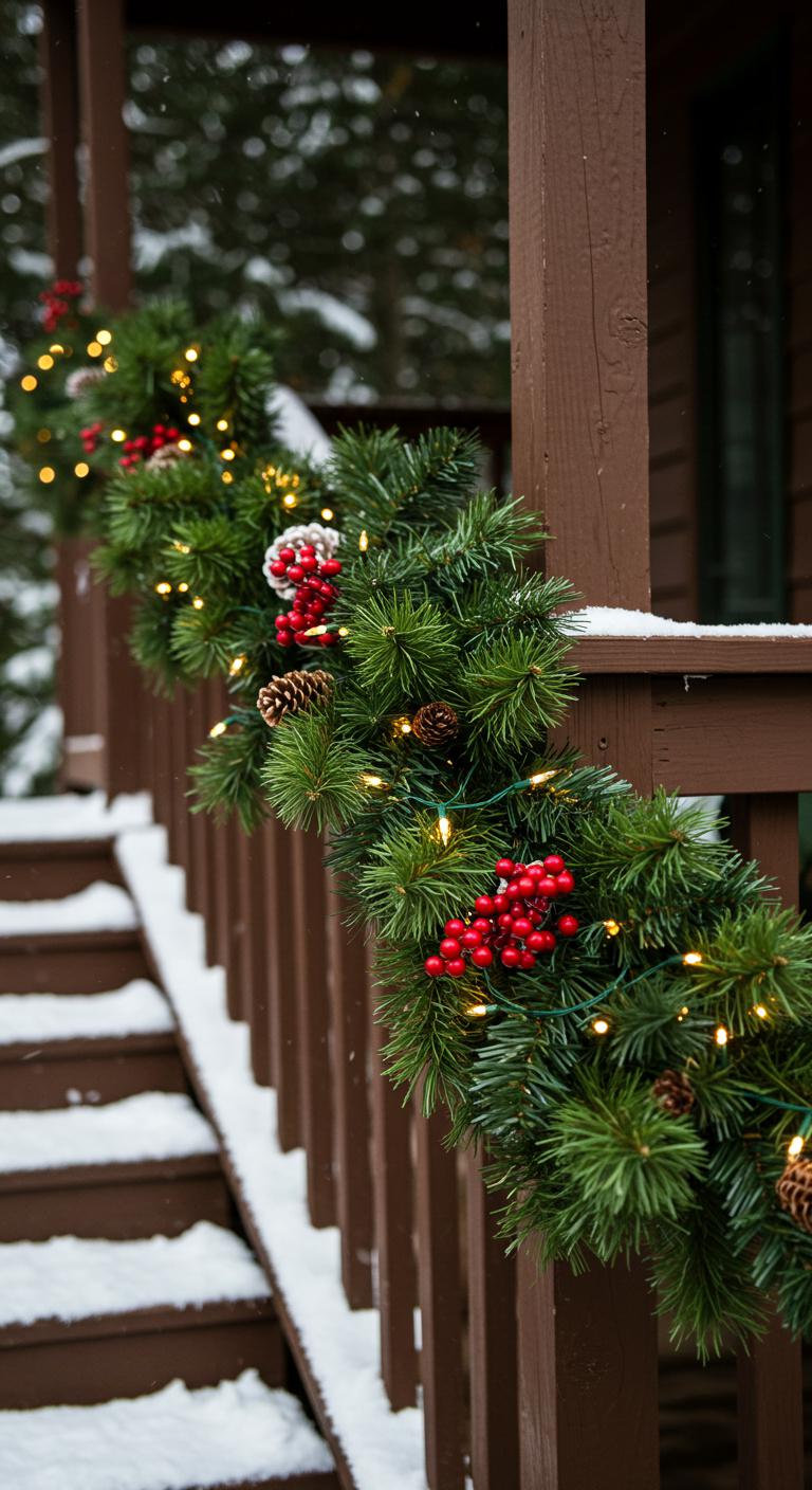 A festive garland is perfect for adding charm to your porch. Drape it over railings or hang it from beams. You can make one using fresh branches or pinecones, and it doesn’t have to break the bank. If you prefer a quicker solution, buy a pre-made garland from a craft store. Personalize it with ribbon, ornaments, and lights.