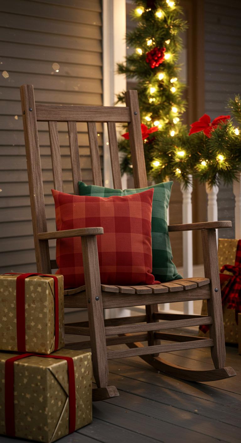 Incorporating a rocking chair adds a classic touch to your porch. Dress it up with decorative pillows or throws that showcase festive colors. You can find affordable chairs at yard sales or second-hand shops. This adds character and creates a cozy nook where people can sit, relax, and enjoy the festive atmosphere.