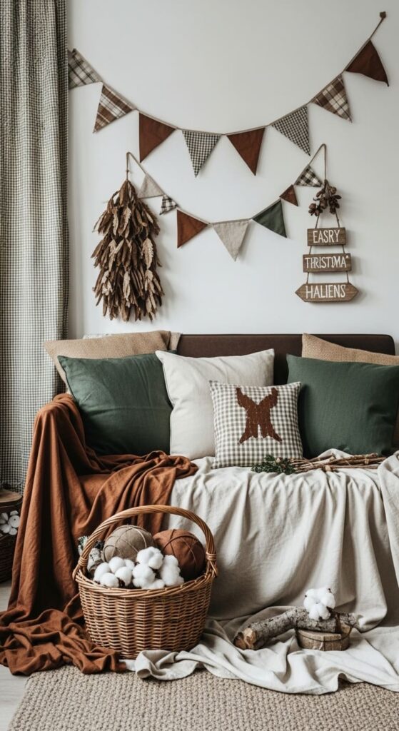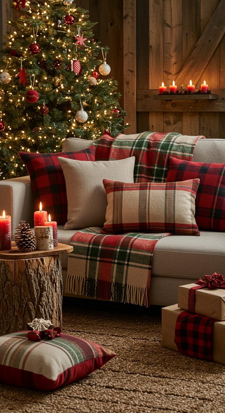 Plaid patterns are perfect for adding rustic appeal. Use plaid throw blankets, pillows, or even table settings to enhance the cozy atmosphere. Combining plaid with seasonal colors can create inviting focal points in the room. Check local thrift stores for vintage plaid textiles to save money. A simple DIY option is to sew small pillowcases or cushion covers using plaid fabrics for a warm, homey feel.