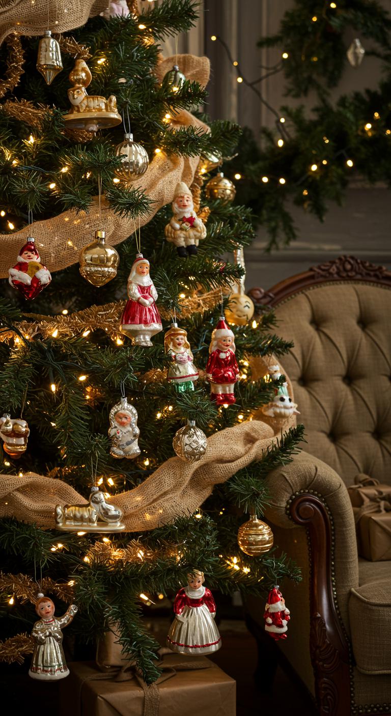 Hang vintage ornaments on your Christmas tree to create a nostalgic ambiance. Visit thrift stores or flea markets to find unique pieces that tell a story. Incorporate heirloom ornaments from family traditions, or make your own using simple materials. For a cost-effective approach, craft ornaments from felt or natural materials. Attach a simple ribbon for hanging, or use twine for a rustic look. This personal touch brings memories to life and adds character to your decorations.