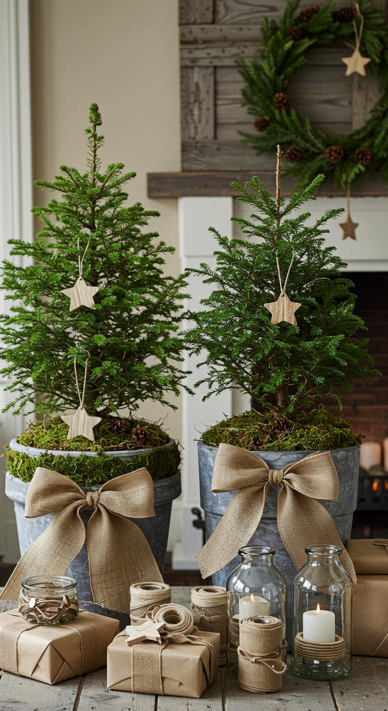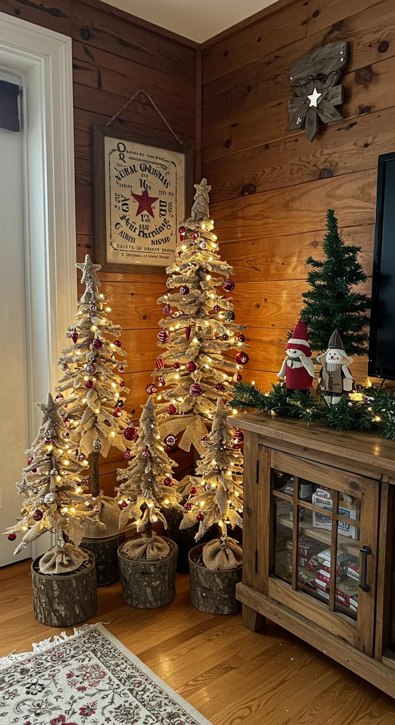 Instead of a single large tree, decorate with smaller trees throughout your home. These can be made from twigs or small fir branches arranged in rustic containers. Add simple ornaments or lights for charm. A selection of these trees positioned in different areas creates a cozy, layered look. You can even craft tabletop trees from paper or branches. Place them in varying heights to add interest to your decor without breaking the bank.