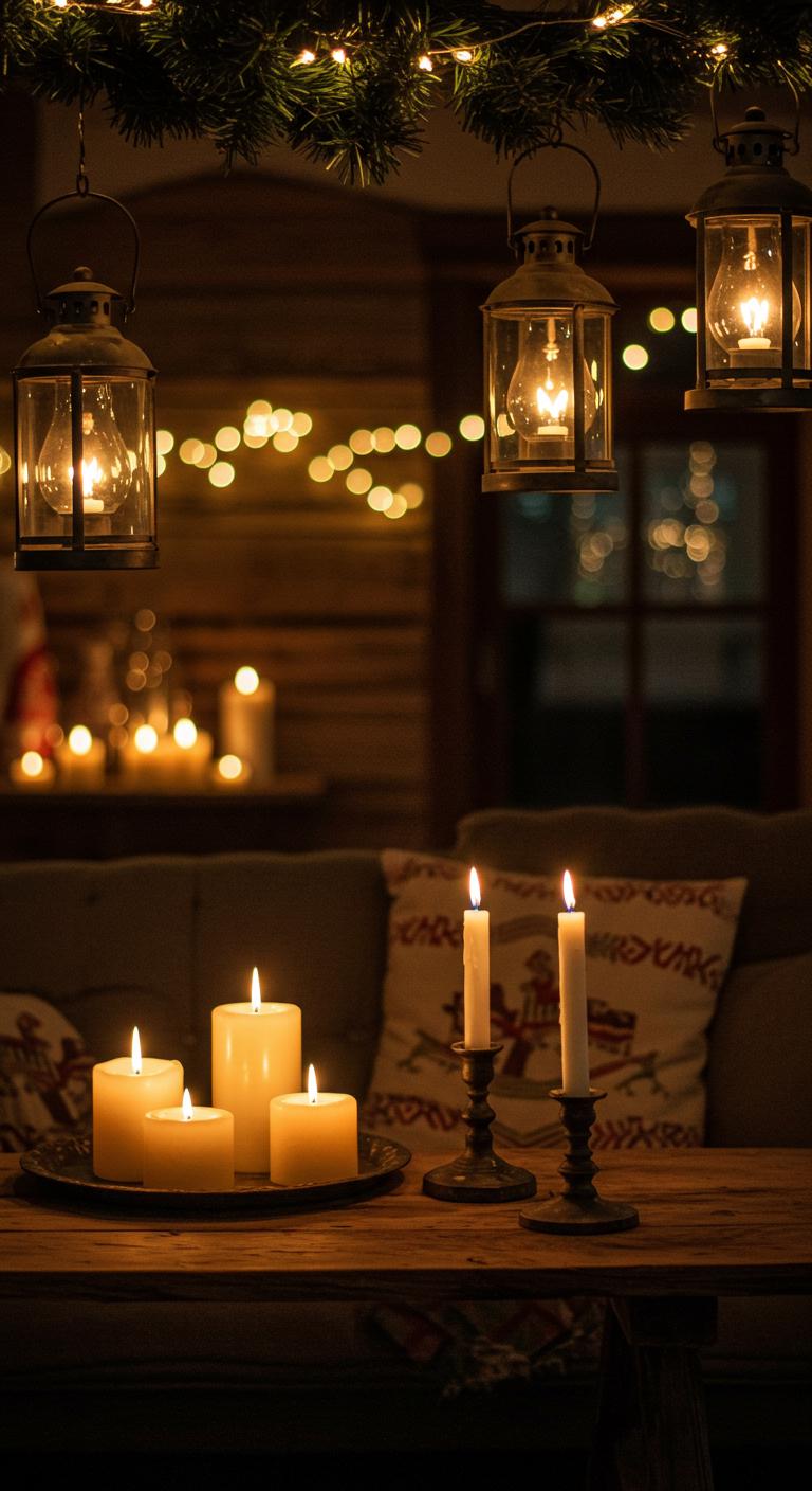 Using candlelight and warm lighting creates a peaceful environment in your living room. Opt for cluster arrangements of assorted candle sizes—use glass holders for a classic touch or wooden ones for a rustic flair. Invest in battery-operated tea lights for convenience without compromising safety. String lights can be woven through garlands or hung on mantles. Warm lighting adds a magnetic charm to your holiday scenery.