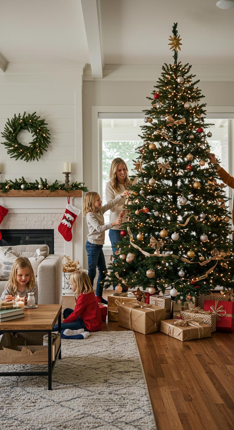 Creating a family-centered holiday scene around your neutral Christmas tree fosters connection. Encourage family members to participate in decorating, fostering a sense of collective joy. Set out simple, fun decorations everyone can add, like homemade ornaments or handwritten decorations. Surround your tree with comforting details such as cozy blankets and inviting seating. This approach cultivates memories and transforms your home into a lively hub of holiday cheer and togetherness.