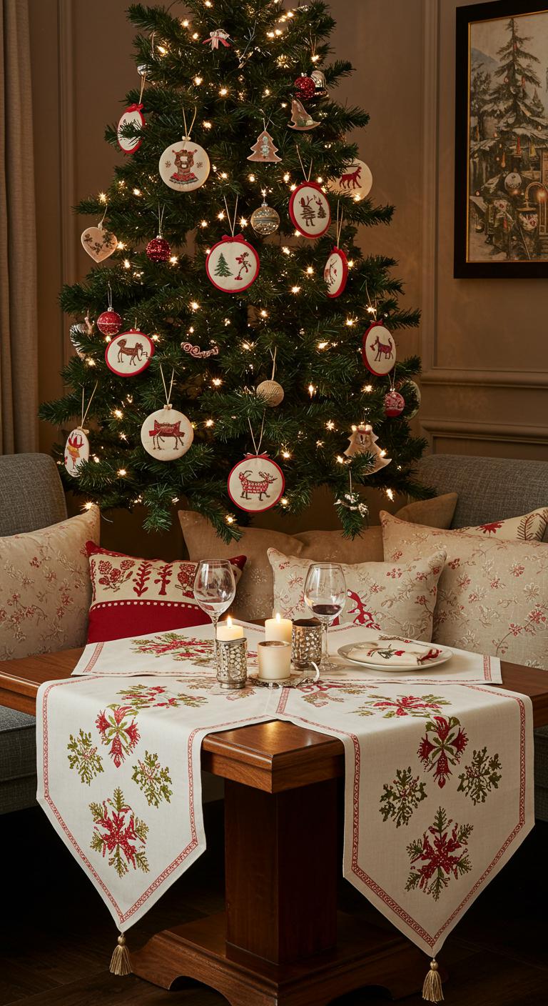 Textiles can play a substantial role in your Scandinavian tree decor. Think about incorporating embroidered stockings or decorative cushions to add warmth. You can transform inexpensive items into festive decor with a bit of creativity. For example, use fabric scraps to craft unique ornaments or create a beautiful table runner with seasonal designs. This touch adds personality to your decor and resonates with the handmade charm of Scandinavian style.