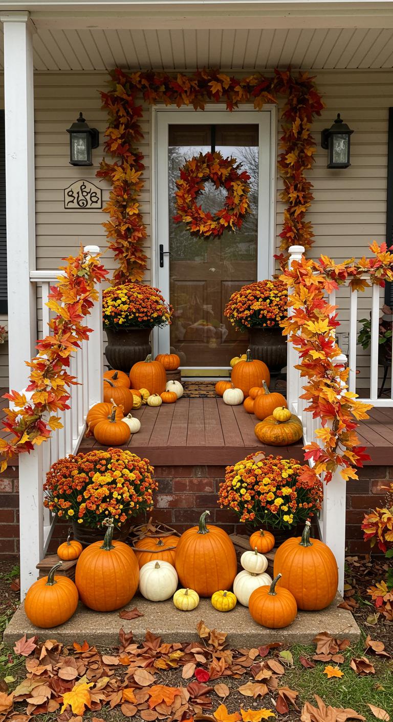 This thoughtful arrangement transforms the porch into a welcoming autumn retreat.