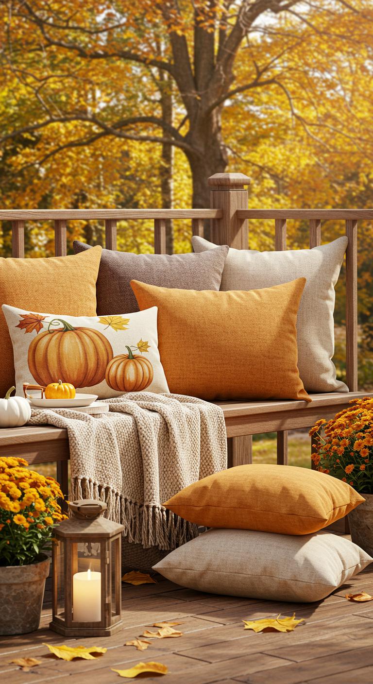 While the chill of fall settles in, creating a cozy porch atmosphere becomes essential for enjoying the season. Stylish throw pillows in warm hues and seasonal patterns, such as leaves and pumpkins, invite relaxation.