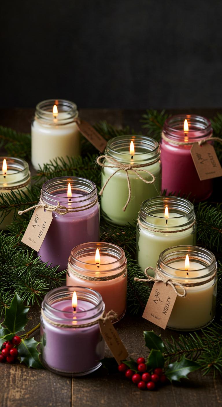 Crafting your own candles is easier than you think! Start with wax flakes, essential oils, and wicks. Melt the wax in a double boiler and mix in your desired scent. Pour the mixture into a decorated glass jar or tin, then wait for it to cool. You can personalize these candles by using colored wax or adding dried herbs for a unique touch. Consider making different scents for each recipient. Use natural decorations like twine or dried oranges for a festive look! This project can be done for under $20 and can yield several candles.