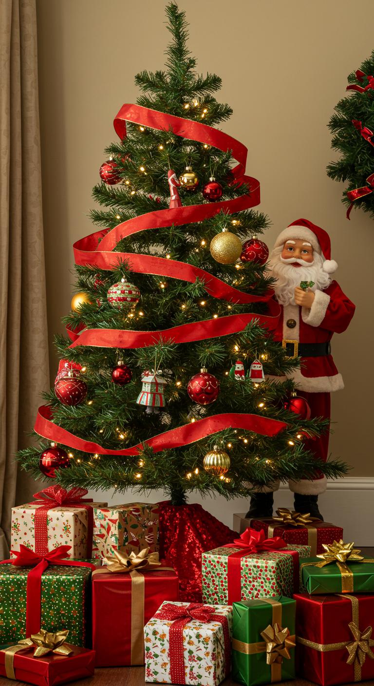 Striped bows and ribbons can add a playful yet classic charm to your decor. Try using red and white striped ribbon to wrap presents or gird wreaths. Bows can further embellish your tree or furniture. To create an inviting atmosphere, layer various sizes of bows on table settings or hang them along garlands. You can also create unique ribbons by painting existing ones or crafting with leftover fabric—a budget-friendly yet stylish option during the holiday season!