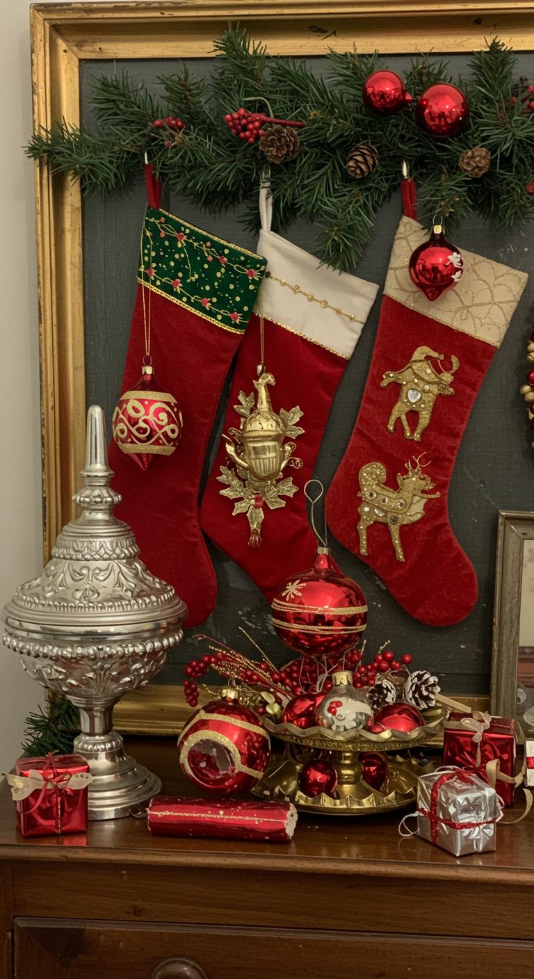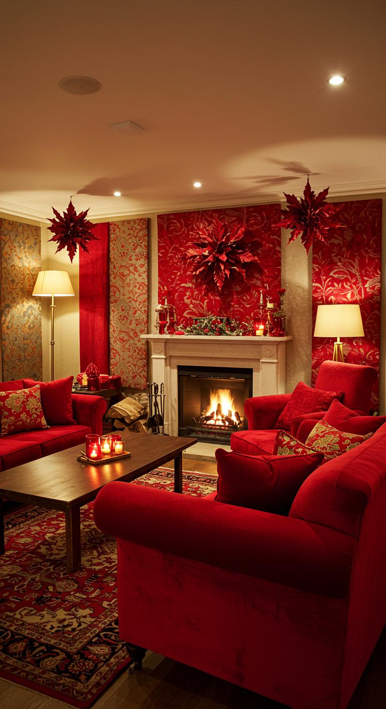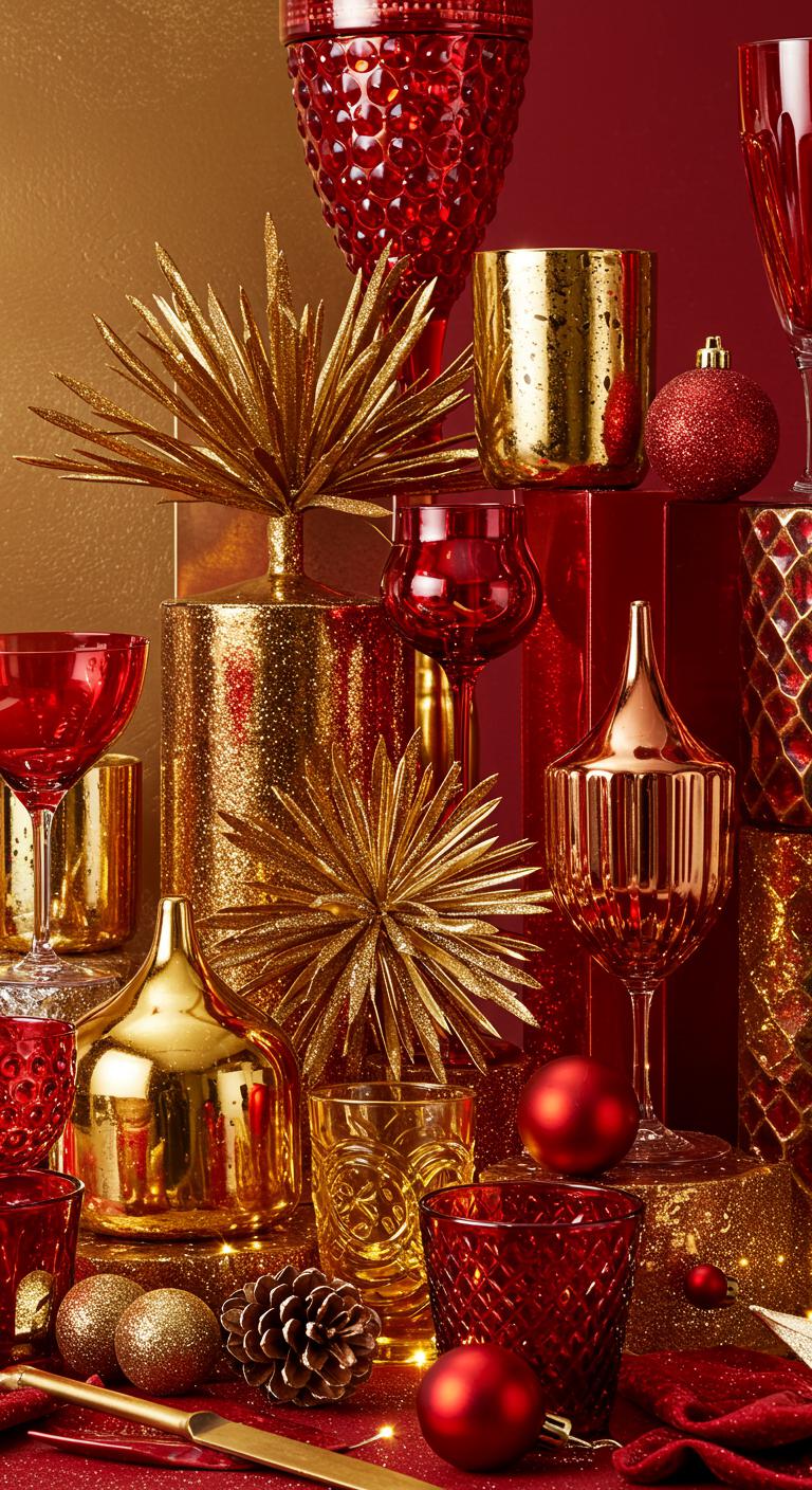Red decor can benefit from the inclusion of mixed metallics. Gold, bronze, and silver complement red beautifully, adding sparkle and sophistication. This look works well in a contemporary setting. Begin with a red base, then layer in metallics through ornaments, tableware, or even wall decorations. Use thrifted metallics for a budget-friendly approach. Craft a metallic centerpiece using DIY materials such as spray paint or repurposed items. This modern twist keeps your decor looking bright and chic throughout the season.