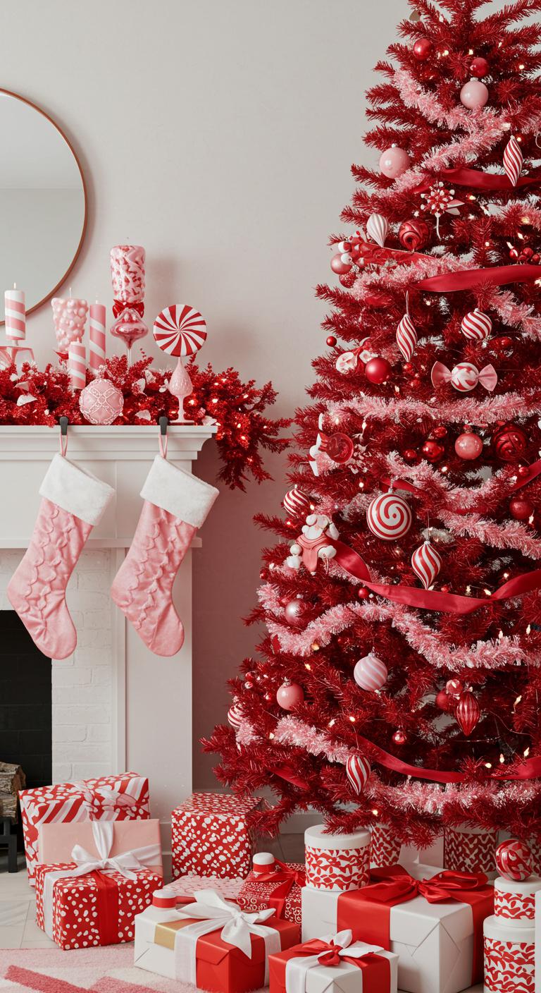 The pairing of red and pink decorations brings a contemporary twist to traditional holiday themes. This mix can be playful yet elegant, perfect for families or youthful decorators. Consider crafting festive wreaths that utilize both colors through flowers or ribbons. Hang pink and red ornaments across your tree, interspersing them for depth. DIY projects like painted rocks or wooden cutouts also work well in this colorful approach. This idea is both affordable and significant in making your space unique.