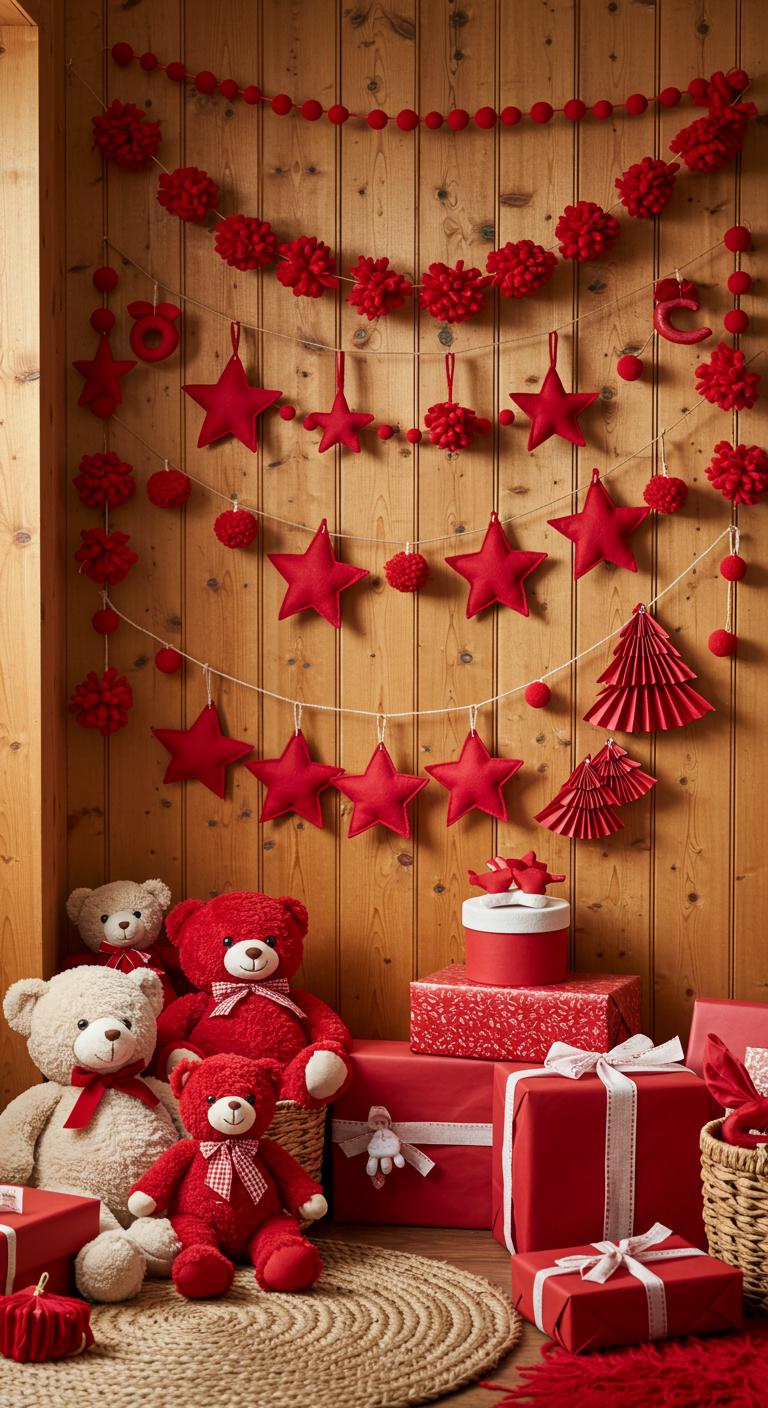 Incorporating bright, whimsical red decor elements makes for a strong kid-friendly theme. Think of fun ornaments, playful garlands, and festive touches that capture young imaginations. Involve the children by crafting DIY ornaments together from safe materials. Using popsicle sticks or felt keeps safety in mind while creating a delightful holiday display. Hang their creations on the tree to make it personal. This encourages bonding and creates cherished memories during the Christmas season!