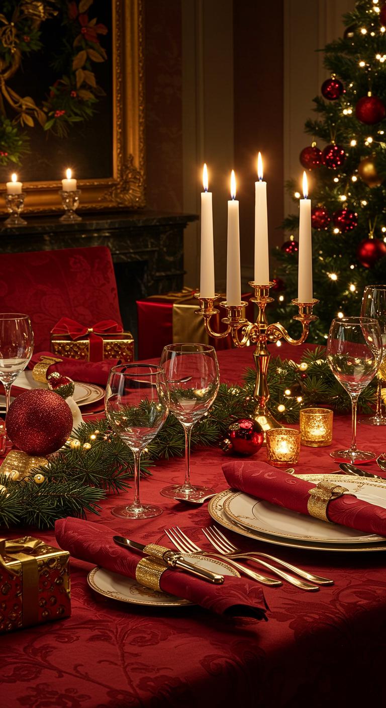 Pairing rich red with gold creates a luxurious holiday vibe. This classic combination is perfect for sophisticated gatherings. Use gold glittered ornaments on a red-themed tree. Dress your dining table with gold flatware and red table runners for a festive touch. Candle arrangements in gold surrounds can create an enchanting atmosphere. Consider crafting DIY gold-painted branches to decorate along your table or mantel. This look is an elegant introduction to the magic of Christmas at home.