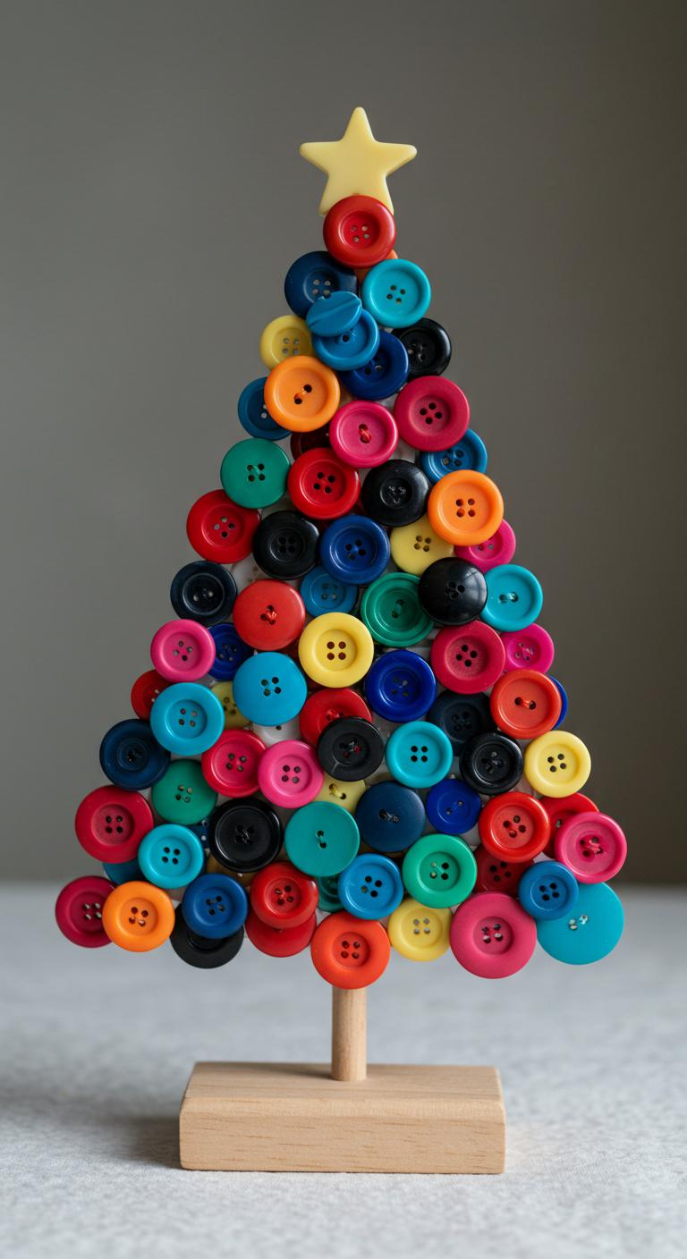 Gather buttons to create cute button tree ornaments. Stack buttons to form a tree shape, securing with glue. Use a star button on top for charm. This craft is perfect for using up leftover buttons and makes for easy assembly. It’s a great idea for kids, too, promoting fine motor skills. Show off these joyous pieces on your tree or give them as gifts!