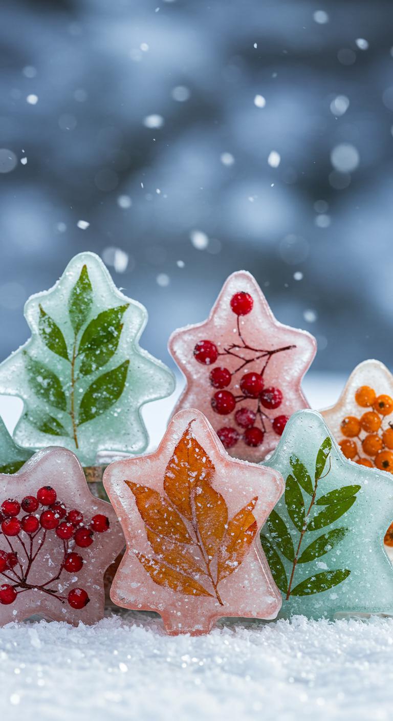 Make seasonal ice ornaments as a festive outdoor decoration! Fill silicone molds with water, adding leaves, berries, or twigs for flair. Freeze overnight, and hang them on trees or hooks outdoors. They create a lovely winter wonderland effect while melting away into nature. This project promotes fun and learning—great for educational concepts like freezing and natural art!
