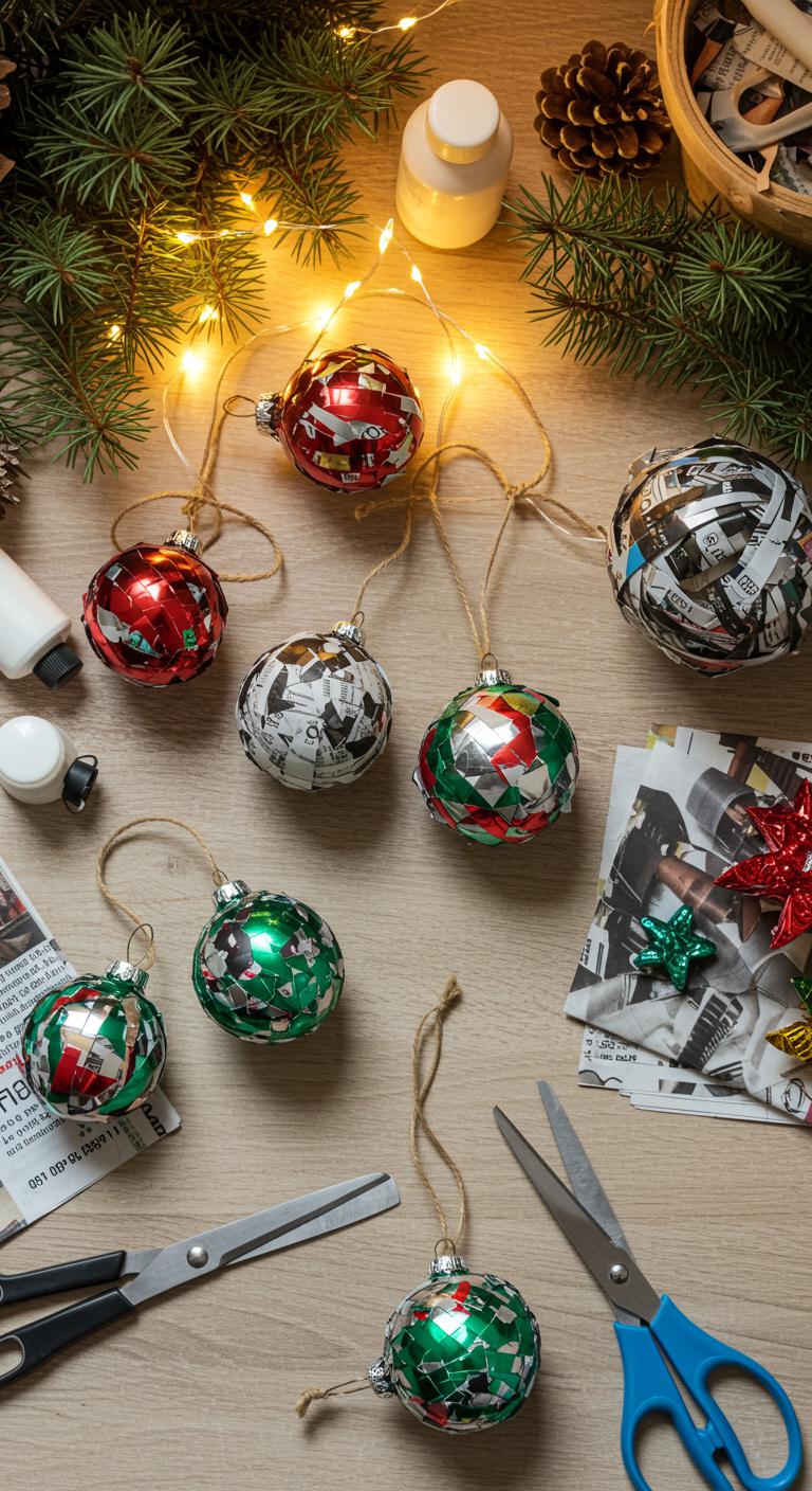 Old newspapers can transform into beautiful holiday decorations. Cut strips of newspaper into thin pieces and roll them into balls or flatten them for a bauble effect. Use glue to create shapes and layers. This project not only gives you a unique ornament but is excellent for a fun yet eco-friendly way to repurpose. Hang these bright accents above your tree or around the house for a whimsical touch.