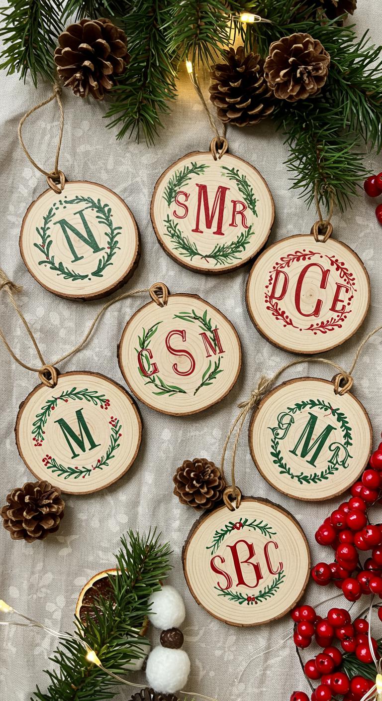 5. Monogrammed Wooden Ornaments