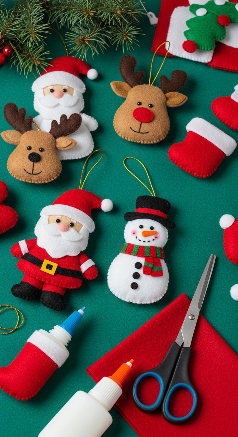 Create cute characters using colorful felt. Cut shapes for Santa, snowmen, or reindeer. Sew or glue pieces together, add buttons for eyes, and use yarn for hair or scarves. This craft is safe for children and allows them to use scissors and glue. The results are both playful and charming. Hang these jolly figures on the tree or give them as unique gifts!