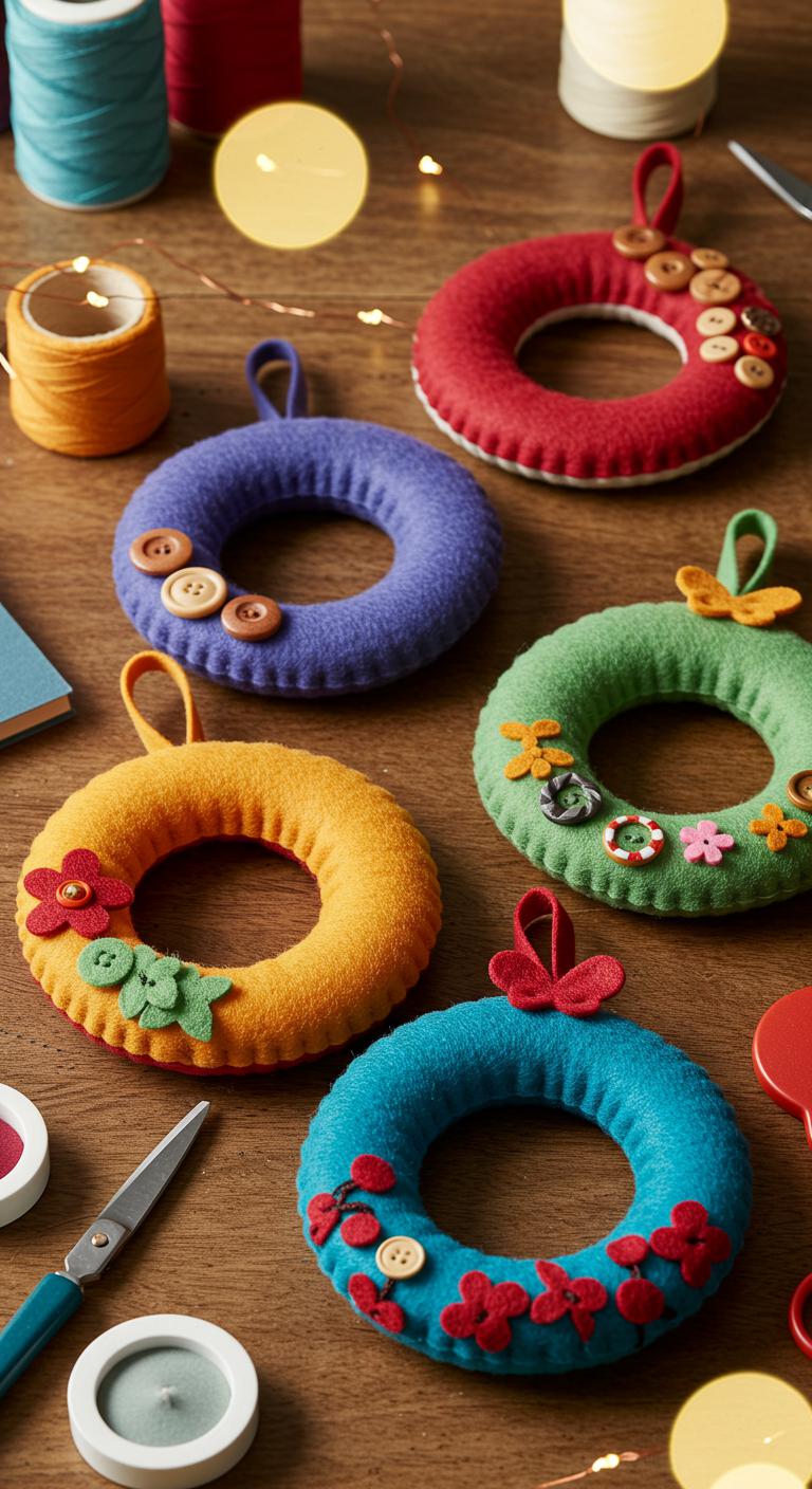 Crafting mini wreaths from felt and buttons is a fun project. Cut felt into small circle shapes, layering them for a fuller look. Attach buttons to decorate the center. Use a thread to hang them or a small loop of ribbon. These easy-to-make wreaths can brighten up any spot in your home. The use of buttons adds character, while felt provides a sweet touch.