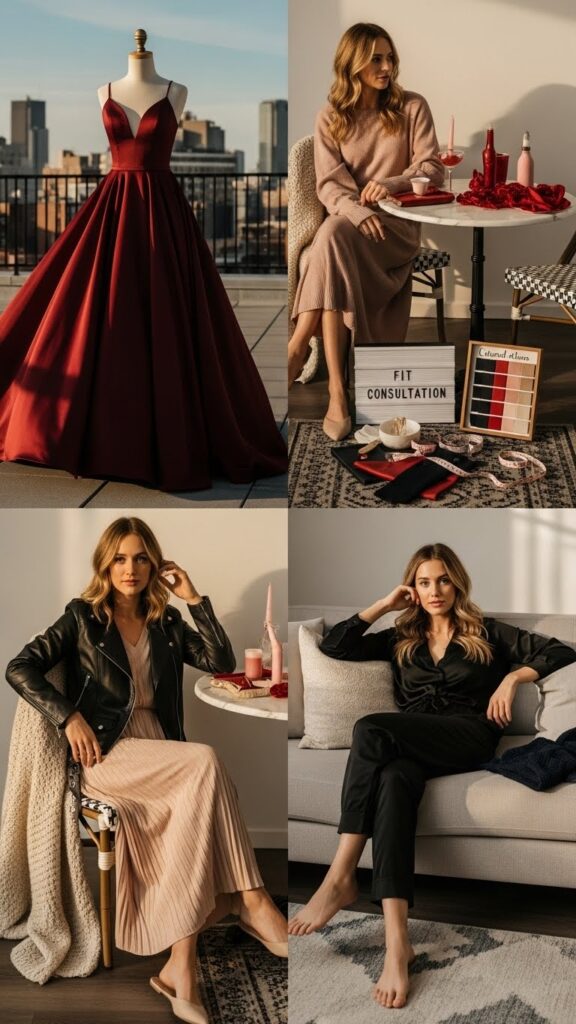 Whether you’re heading to a cozy dinner, a rooftop cocktail, or a night in, start by matching the look to the occasion—don’t force a ball gown to a casual cafe.