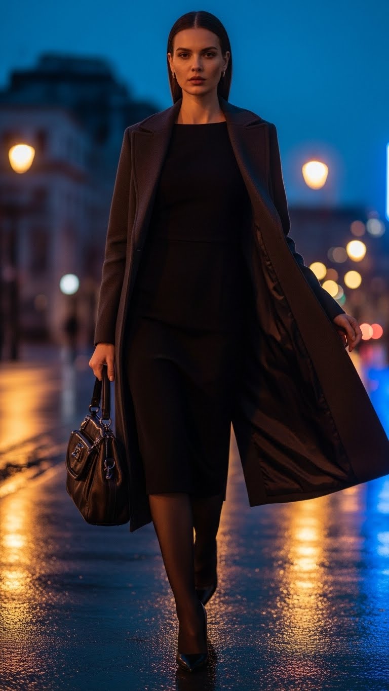 Keep accessories minimal, let the silhouette and confident stride do the talking.