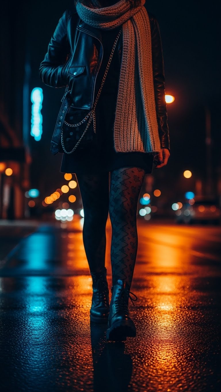 Swap the airy midi for something sharper and you’ll shift from gallery-chic to city grit without losing polish. You’ll pair a short skirt with patterned tights and sturdy ankle boots, layering edgy textures—leather, knit, metal—so you move freely under city lighting.