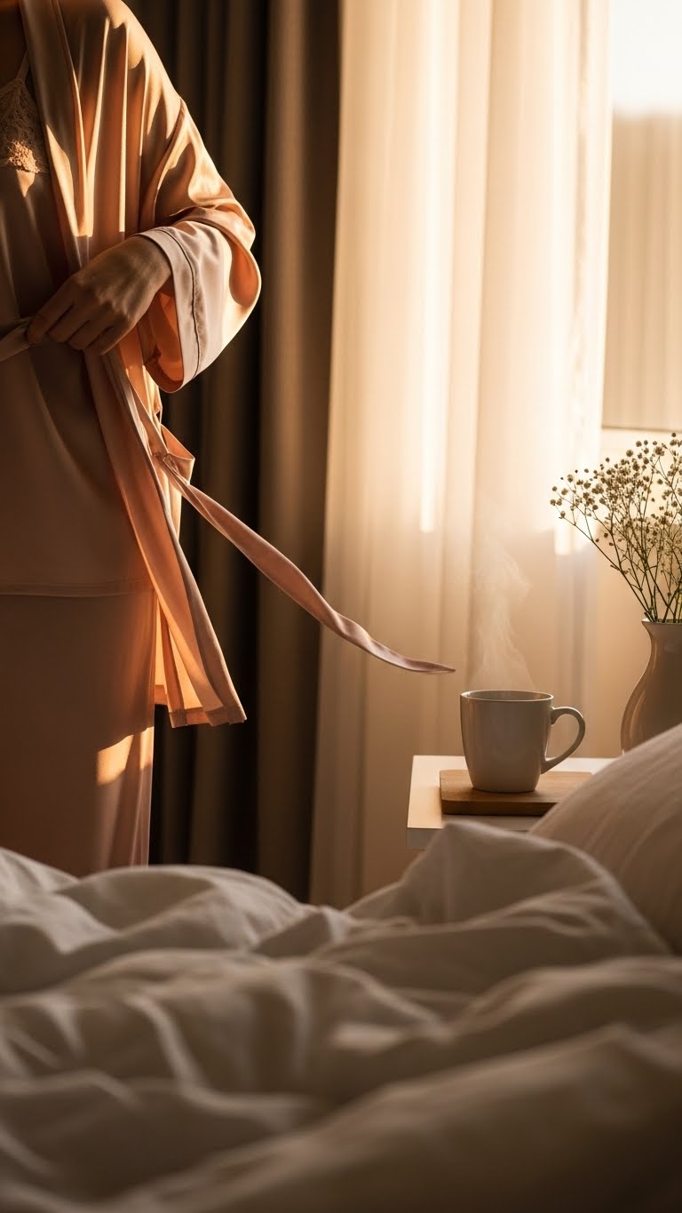 Choose breathable silk, stick to satin care tips—gentle wash, cool air dry—and let relaxed elegance set the tone for the day.