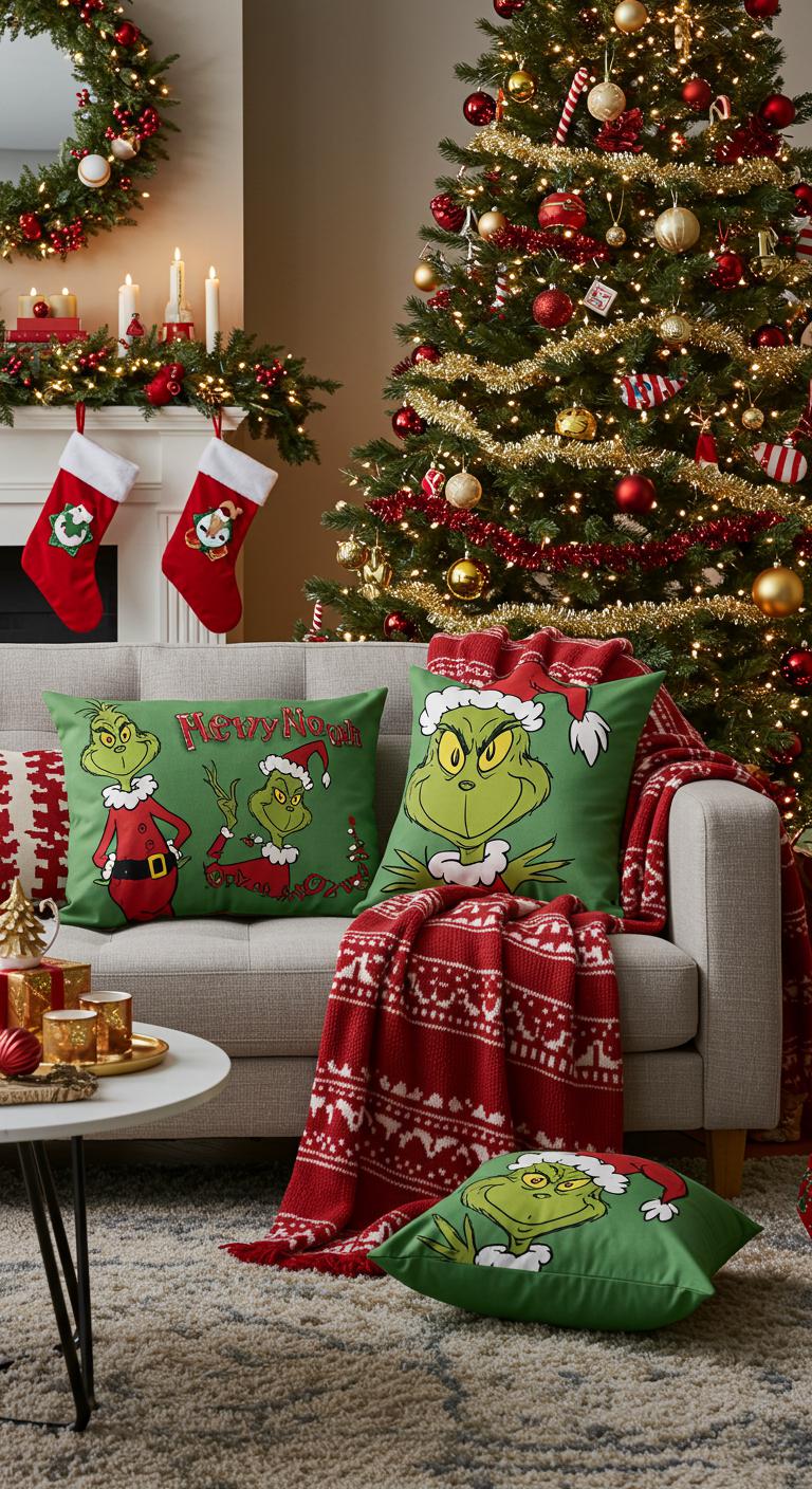 Brighten your living space with Grinch-themed pillows. Look for whimsical designs that reflect the character’s charm. You can find these in stores or make your own using fabric paint or printable iron-on transfers. Scatter them on sofas or chairs to create a cohesive holiday look. This way, your living area engages with the Tree and emphasizes the holiday spirit. Consider sewing pillow covers from fabric remnants to save money. These cozy touches will add warmth to your festivities.