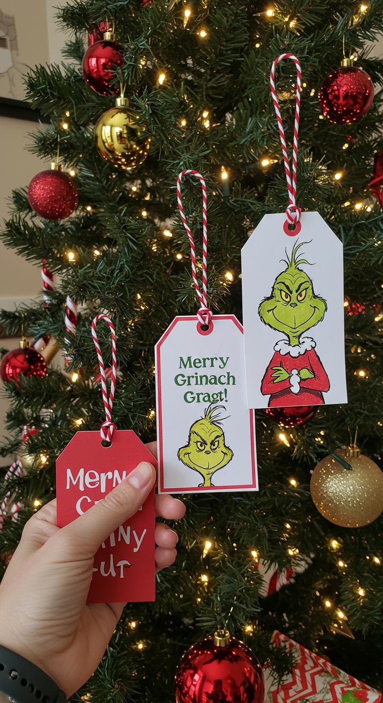 Personalize your gifts by creating Grinch-themed gift tags. Use cardstock in bright colors and add festive designs, like the Grinch’s face or stripes that match his iconic outfit. A simple hole punch lets you attach them with string or ribbon. This DIY project is easy on the wallet and adds a personal touch to your gifts. You can also gather your family and make it a fun evening of crafting together before the holidays!