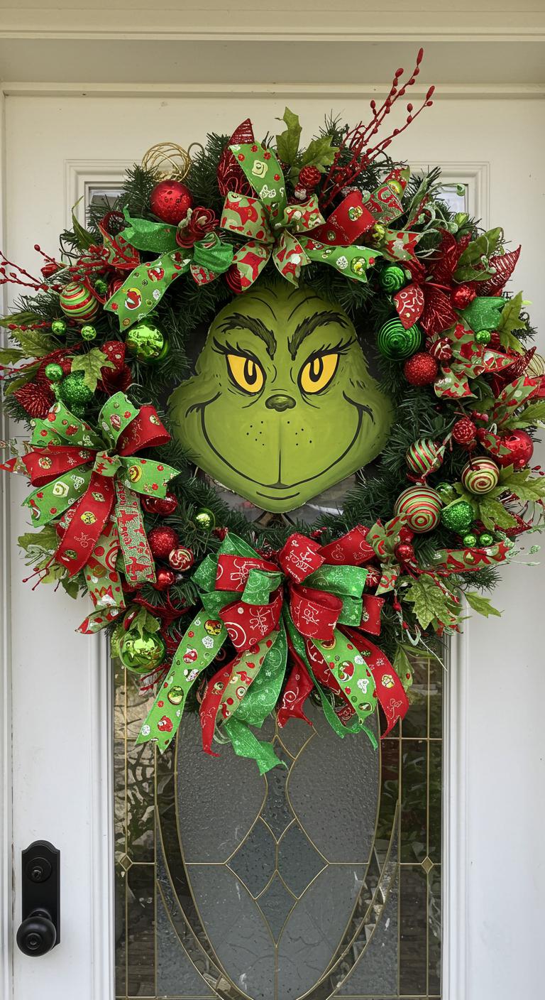 Welcome guests with a Grinch-themed wreath at your door. Create one using upcycled materials like twigs, pinecones, and ornaments. Wrap a wire frame or a sturdy base with green garland to form the wreath’s shape. Attach red and white accents that echo the Grinch’s colors, like small ornaments or bows. This can be made on a budget! Invite friends over for a crafting day and provide supplies for a fun activity that brings the holiday spirit to life.