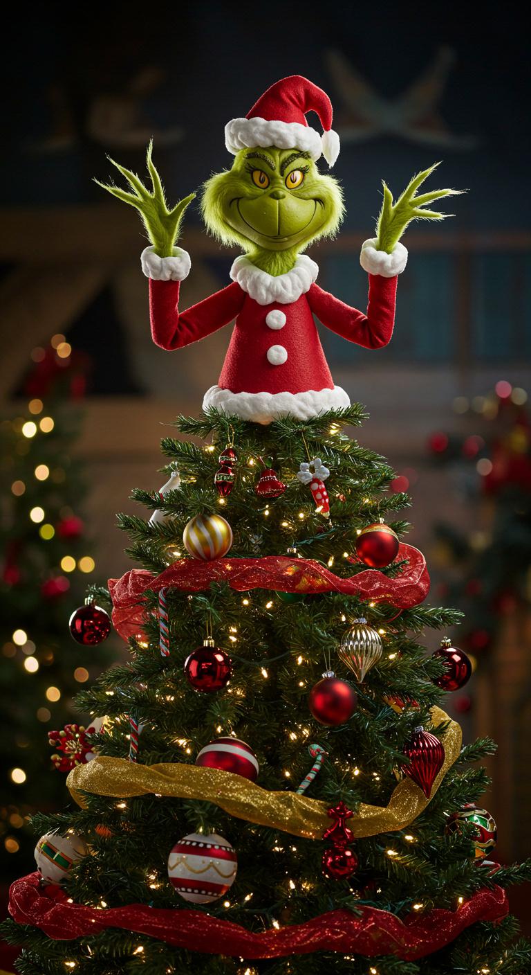 Make a statement with a whimsical tree topper shaped like the Grinch himself. This can be a DIY project using lightweight materials like felt or cardboard. Add fun features, such as a Santa hat or a cheerful smile. Secure it with wire for a stable display. If you prefer, look for a ready-made option that captures his spirit. This unique touch will not only enhance your tree but also entertain guests as they admire your creativity!