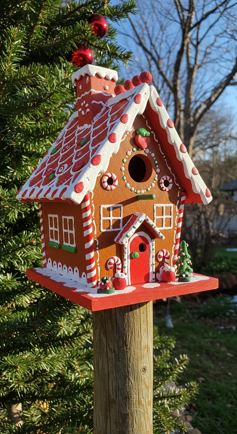 Put a new spin on birdhouses by transforming them into gingerbread houses. Paint the exterior with bright colors and add details like candy-like embellishments using paint or fabric. Position them in your garden or hang them in trees to create an inviting display. Plus, they can become functional birdhouses after the season ends, making this a fun and sustainable craft idea for kids and adults alike.