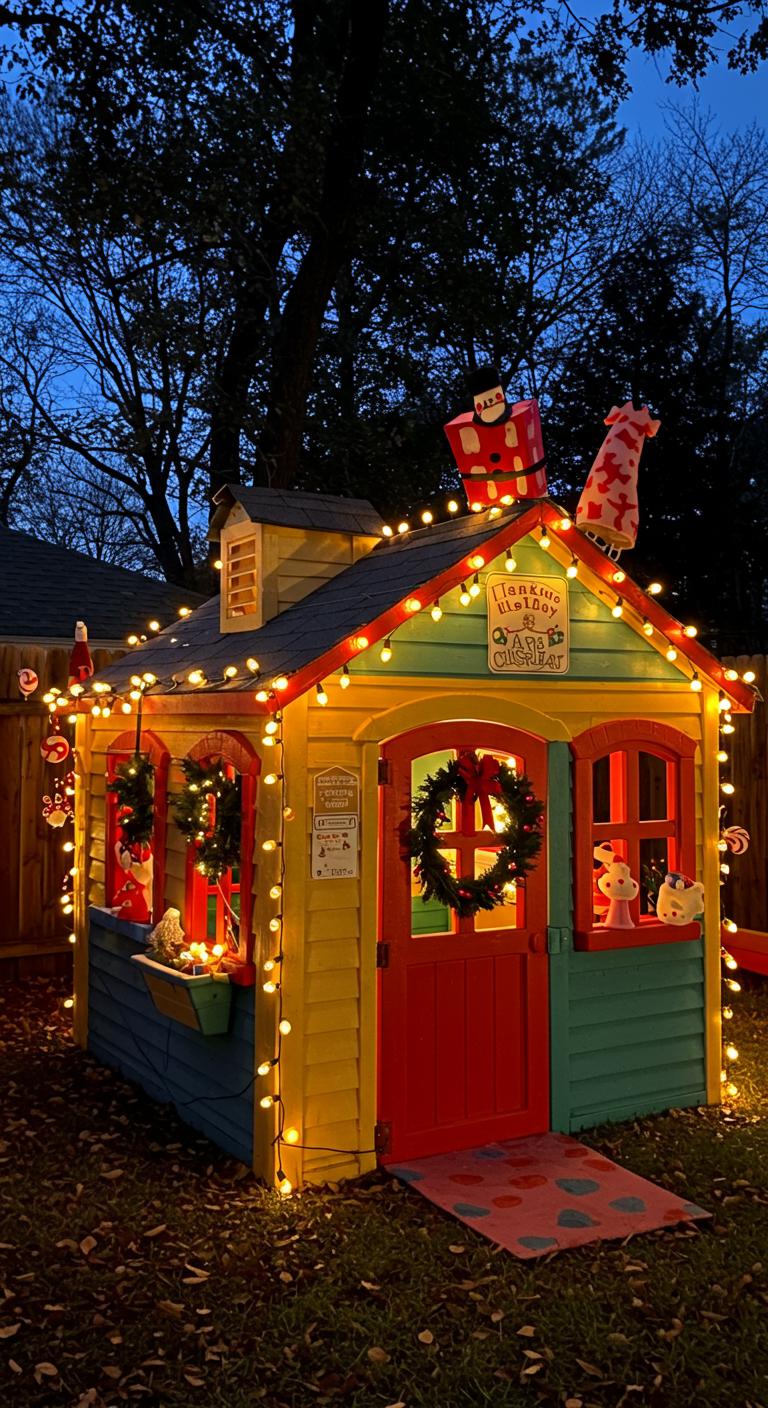 Don’t forget about your kids’ playhouse! Decorate it with lights, wreaths, and vibrant mats for festive fun. Opt for playful themes, such as elves or whimsical animals, to engage children’s imaginations. This encourages them to enjoy their space while celebrating the holiday spirit. For added cheer, create DIY ornaments to hang inside. Not only does this extend the holiday joy, but it also strengthens family bonding.