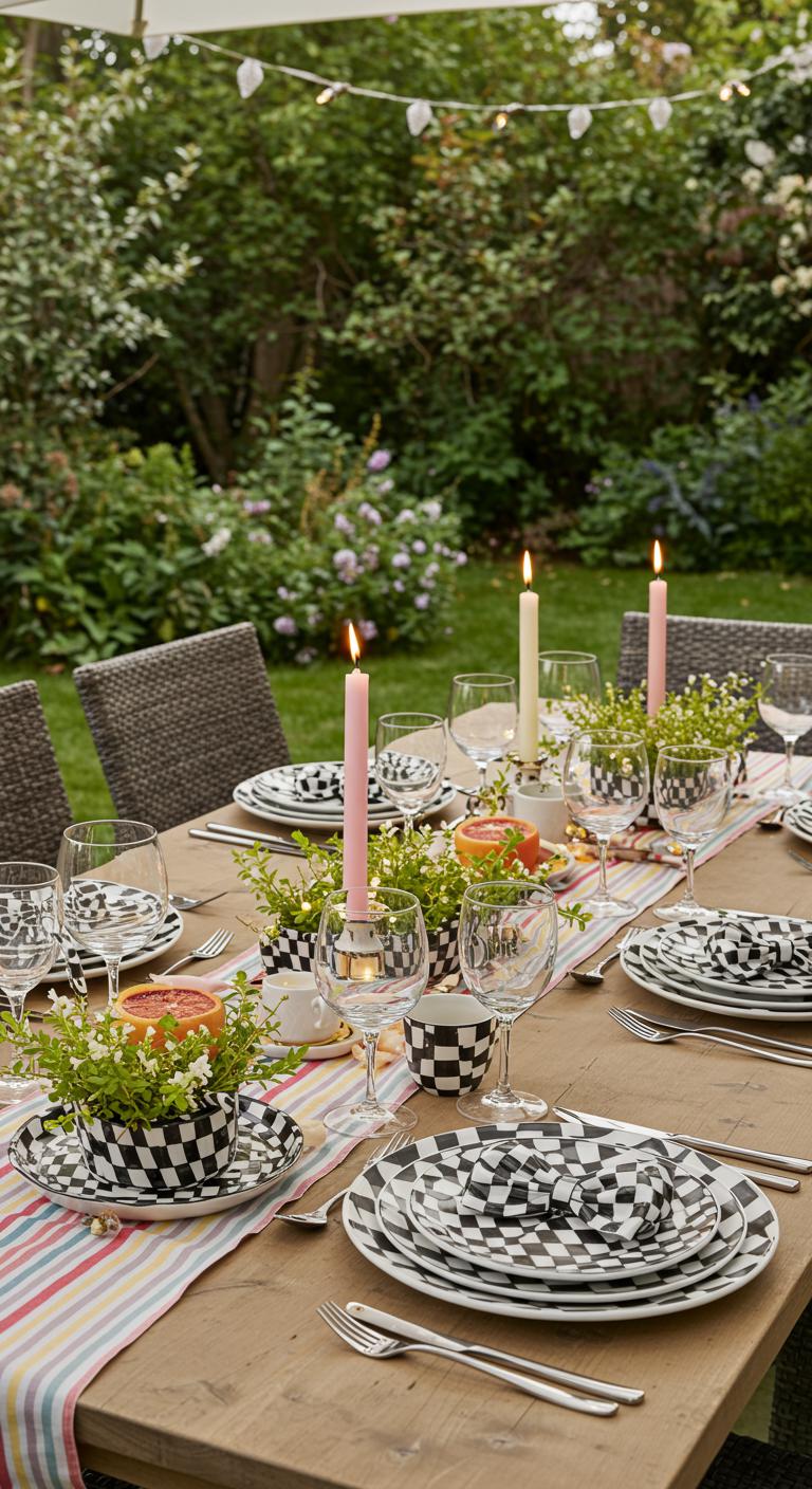 Add fun to your outdoor dining with monochrome bow tableware. Look for plates, napkins, and glassware that feature bow designs. They add a whimsical touch to any gathering, especially holiday meals. If you enjoy crafts, consider personalizing plain plates or using fabric to create unique napkins. Use bright colors for a lively atmosphere. This step is sure to enhance the festive spirit while also being budget-friendly!