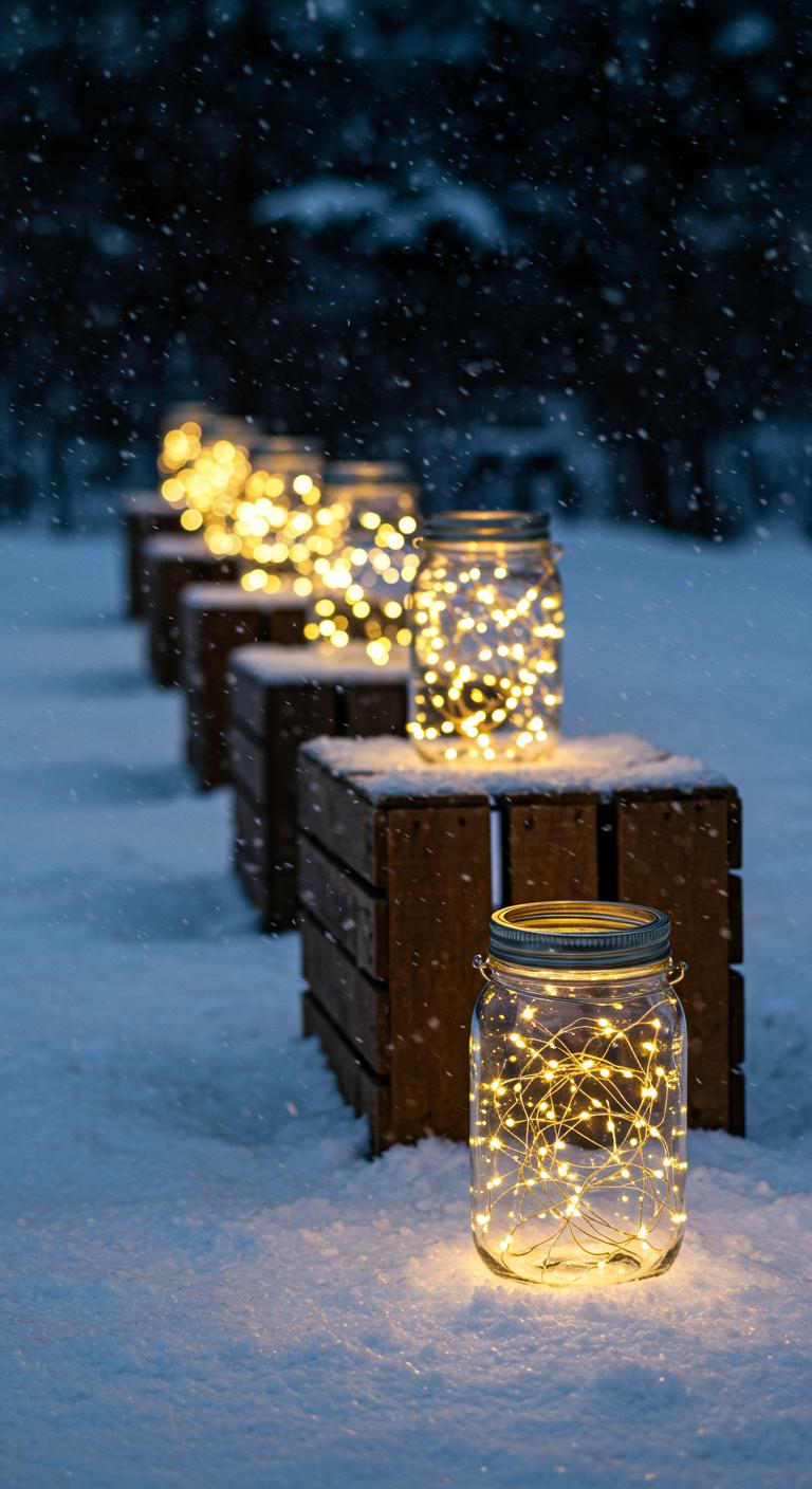 Mason jar lanterns can create a magical glow along your walkway or patio. Begin by filling standard mason jars with battery-operated string lights or candles. For a rustic look, wrap twine around the jar necks to add character. Place them along pathways for warmth and coziness, or group them on tabletops for a festive dining experience. These lanterns are highly customizable for any style and budget, making them a must-have for your décor.